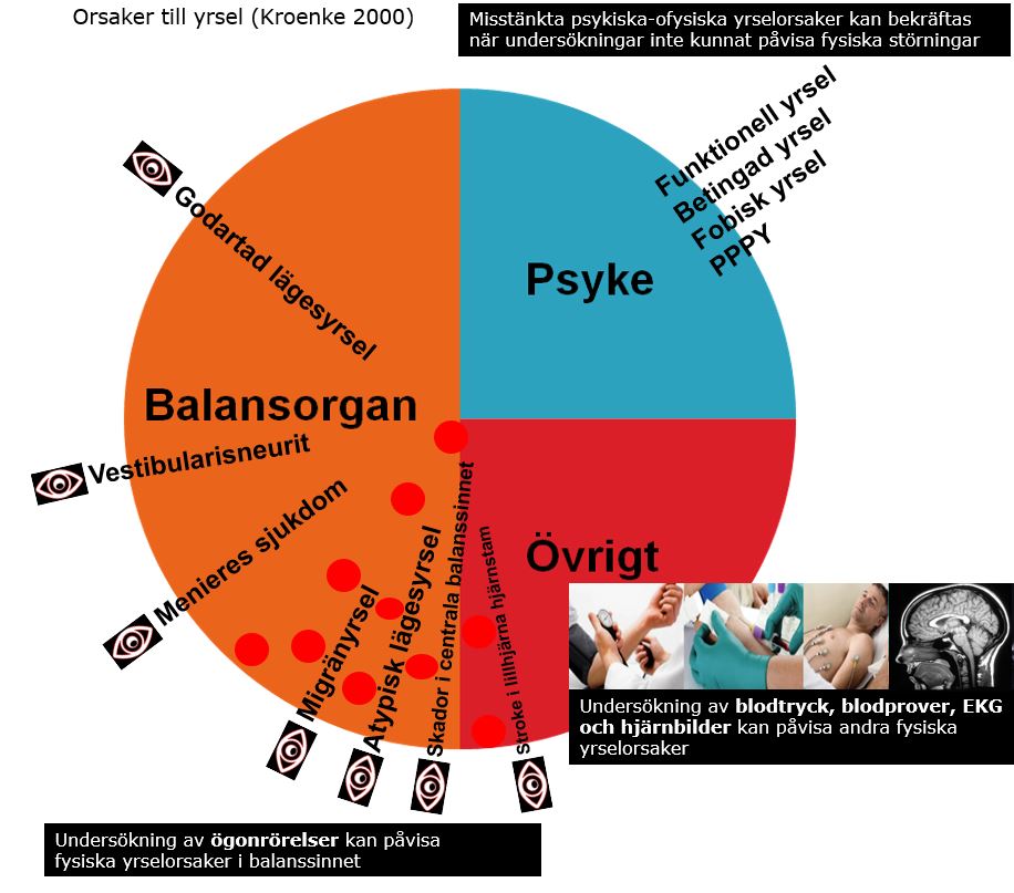 Yrsel beror allra oftast på störningar i balanssinnet. Detta sinne kan bara undersökas genom att dokumentera och tolka ögonrörelser, allra helst under pågående symtom.